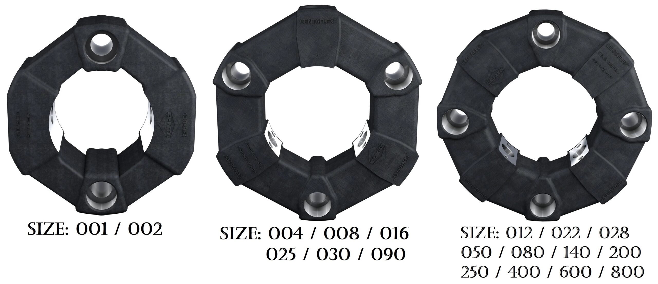 CENTAFLEX-A estão disponíveis em uma variedade de tamanhos, conforme disponibilidade do fabricante, pois esses itens são importados e alguns tamanhos e modelos fornecidos sob encomenda;