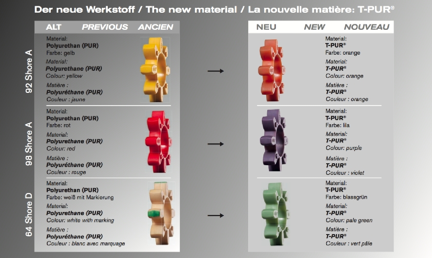 Os Elementos Elastômeros ROTEX® KTR podem ser fornecidos em diversas durezas: