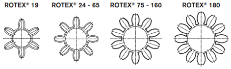 Os Elemento Elastômeros ROTEX® estão disponíveis nos seguintes tamanhos: