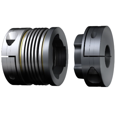 Os acoplamentos de fole TOOLFLEX® KTR são fabricados com fole em aço inox cubos grampo em alumínio.