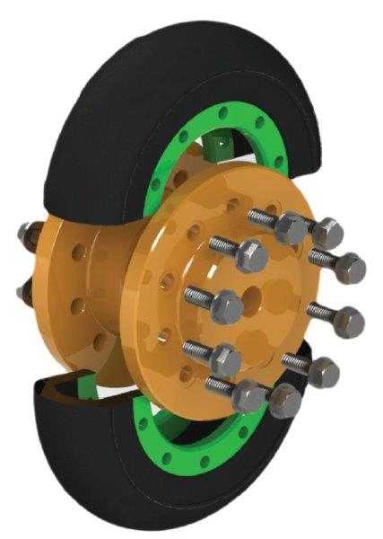 Os Acoplamentos de Pneu RD-FLEX é composto por dois cubos, instalados um em cada eixo, que são unidos por um elemento elástico de borracha nitrílica ou borracha natural. Esse elemento é reforçado por flanges vulcanizadas, que absorvem os desalinhamentos e impactos sem perder a capacidade de transmitir a potência.