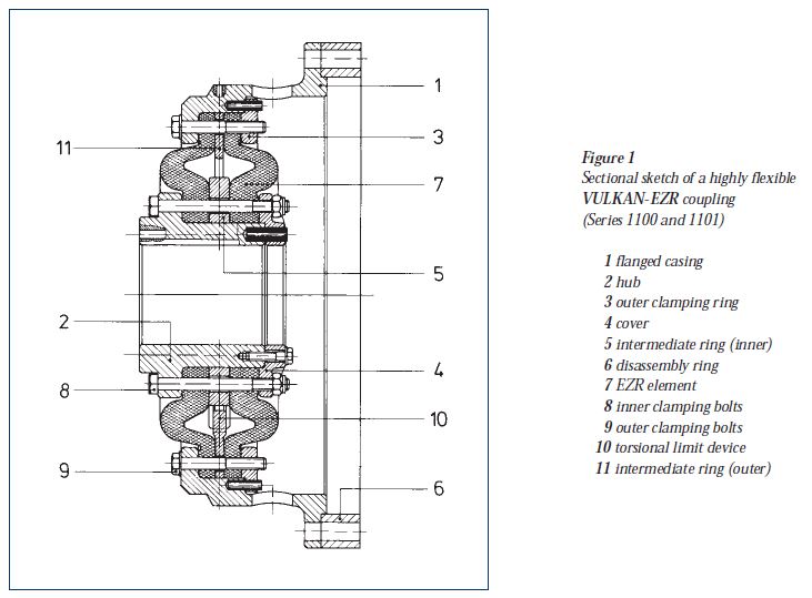 O design do elemento flexível do EZR com propriedades de rigidez progressiva melhora a coordenação da frequência de ressonância e, consequentemente, as cargas dinâmicas, em particular em transmissões de eixos. O material de revestimento sintético garante uma excelente solidez. O design modular do acoplamento de borracha permite sua adaptação a diversos conectores. O EZR também conta com excelentes propriedades de absorção de impacto.