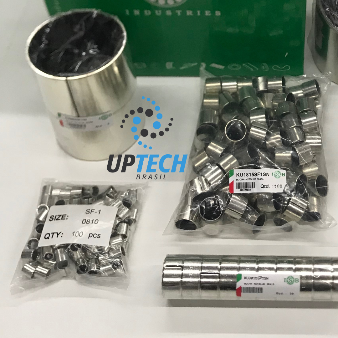 Buchas autolubrificantes ISB, são adequados para movimentos rotativos, oscilantes e lineares. Sua produção abrange diversos tipos e designs em diferentes materiais, todos alinhados aos padrões internacionais. Mancais de deslizamento retos (cilíndricos): São capazes de suportar apenas cargas radiais. Mancais de deslizamento flangeados ou flangeados: Podem suportar cargas radiais e axiais em uma direção.