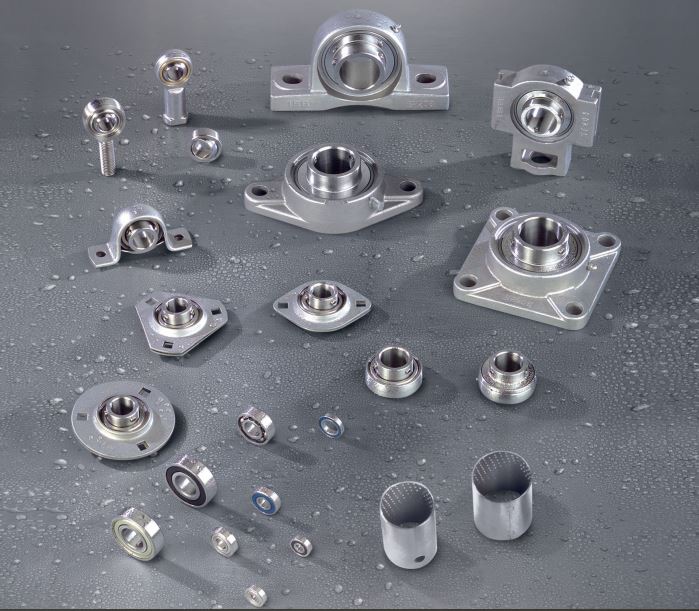São rolamentos, mancais, buchas, terminais, rótulas e outros elementos de transmissão fabricados inteiramente em aço inoxidável, geralmente dos tipos AISI 420, AISI 440 ou AISI 304/316, dependendo da aplicação. São peças desenvolvidas para ambientes agressivos, com alta resistência à corrosão e à oxidação.