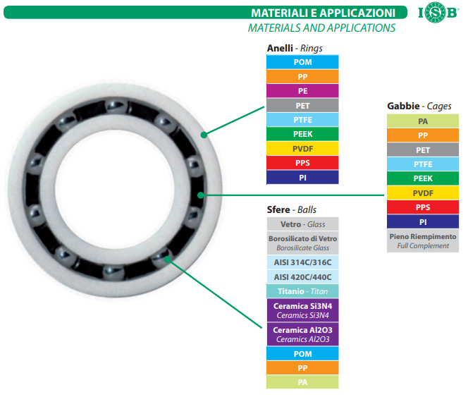 Os Rolamento de Esferas em Polímero ISB, são usados ​​em várias aplicações, por exemplo: * maquinaria de produção de alimentos; * máquinas de lavar roupa industriais; * etc.