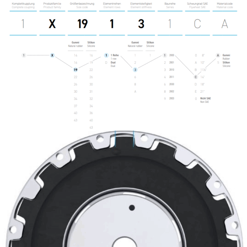 Este elemento do disco é vulcanizado no seu raio interior, o raio exterior é ligado ao corpo flangeado através de um dente de encaixe.